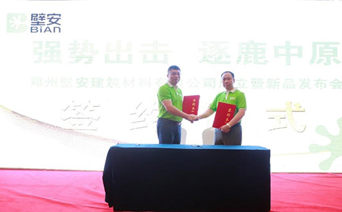 东方优德88官网网站民建公司副总司理熊卫锋先生为大会致辞,,,,,他体现,,,,,依附东方优德88官网网站的优质产品服务,,,,,立异创客模式,,,,,壁安品牌生长远景重大。。。。。民建公司壁安粘合剂事业部总司理陈明先生向在场嘉宾叙述了壁安品牌的由来及其战略妄想,,,,,“相信创客,,,,,深度分享;;;;;;;相信合作,,,,,周全赋能”是壁安平台给与合作伙伴的允许与希冀。。。。。随后,,,,,陈明先生代表壁安品牌与郑州壁安修建质料有限公司董事长张万祥先生现场签约,,,,,告竣战略合作协议。。。。。