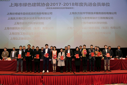 2月28日,,,,,,上海市绿色修建协会第五届第二次会员大会在沪召开。。。。。上海东方优德88官网网站被评为上海市绿色修建协会“2017-2018年度先进会员单位”。。。。。