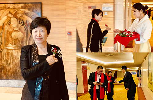 聚会当天适逢国际劳动妇女节,,,,,,,,会务组为参会女性特殊准备了玫瑰,,,,,,,,东方优德88官网网站董事长李卫国先生等为台下的女性送上温馨祝福。。。。。。。