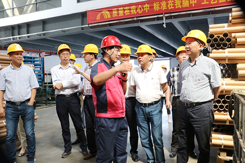 6月11日下昼,,,,,,建德市人大常委会副书记童文扬、建德市副市长夏喜生一行调研东方优德88官网网站杭州建德生产基地,,,,,,杭州生产基地副厂长汤效亮热情接待了调研组。。。。。
