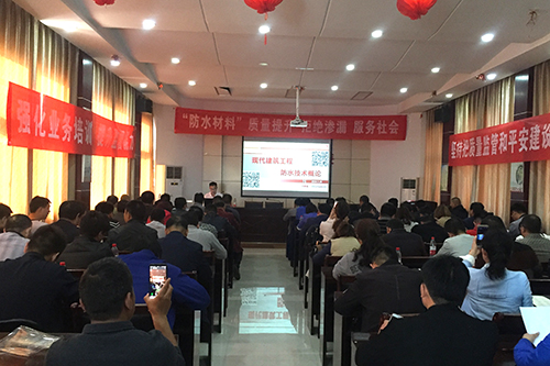 3月28日,,,,,,河南省济源市工程质量监视站举行“防水质料”质量提升交流大会,,,,,,来自质监站、质检站、设计单位、建设单位、监理单位和施工单位的一百二十余人加入了本次聚会。。。。。。。。东方优德88官网网站工渠事业部豫西省总司理朱鸿轶出席聚会,,,,,,郑州手艺副总工孙新磊作主题解说。。。。。。。。