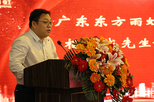 在全体职员奏唱国歌、司歌后,,,,,,,,广东东方优德88官网网站董事长杨浩成致辞。。。。。。。。他对参会嘉宾、合资人、经销商的到来体现欢迎与谢谢,,,,,,,,并对2017年度东方优德88官网网站取得的优异效果作了简要汇报,,,,,,,,同时明确了公司2018年营业生长偏向,,,,,,,,坚定了参会职员对公司未来生长的信心。。。。。。。。