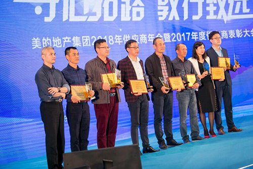 3月16日,,,,,,,,由美的地产集团举行的“守心拓路 敦行致远”----2018年供应商年会暨2017年度优异供应商表扬大会在佛山高明美的鹭湖国际聚会中心召开。。。。。。广东东方优德88官网网站从众多着名品牌供应商中脱颖而出,,,,,,,,荣获美的地产集团专业分包类“集团战略供应商”声誉称呼。。。。。。广东东方优德88官网网站董事长杨浩成应邀出席聚会并代表领奖。。。。。。