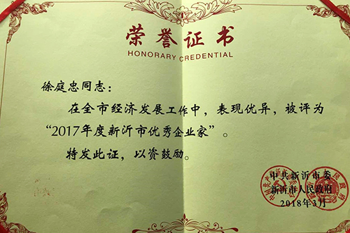 3月17日上午,,,,,,新沂市政府在影剧院盛大召开“全市高质量生长大会”,,,,,,对全市经济生长事情中的先进单位和先进小我私家举行了表扬奖励。。。。。。。。徐州卧牛山生产基地厂长徐庭忠被评为“2017年度新沂市优异企业家”。。。。。。。。