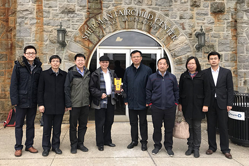 考察团先后造访了瓦克(Wacker)、陶氏(Dow)、巴斯夫(BASF)、阿科玛(Arkema)、塞拉尼斯(Celanese)以及依工集团(ITW)等着名国际化学品公司,,,,,, ,希望通过对标跨国公司,,,,,, ,增强东方优德88官网网站与国际伙伴的团结协作,,,,,, ,实现合作双方共赢。。。。。。。 。随后,,,,,, ,考察团参访了里海大学(Lehigh University)的物理系实验室,,,,,, ,OCT激光实验室以及本-富兰克林EPI合成实验室。。。。。。。 。