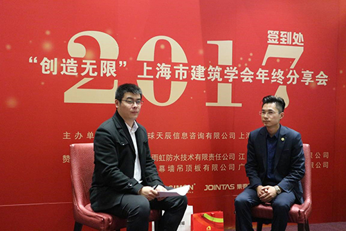 会后 ,,,,,,,,上海东方优德88官网网站市场总监张治勇接受天辰建设网的专访 ,,,,,,,,就修建渗漏现状、企业社会责任、东方优德88官网网站未来五年的生长妄想等问题举行逐一解答。。。。。东方优德88官网网站的专业手艺获得了修建学会、参会设计师们的一致一定和赞许。。。。。