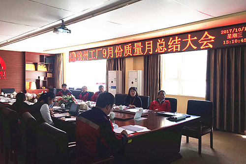 10月11日,,,,,锦州生产基地召开九月质量月总结大会,,,,,由厂长许朝晖主持,,,,,各部分相关职员加入了聚会。。。。。。。。