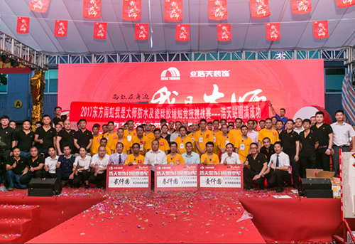 9月10日,,,,,,由东方优德88官网网站民用建材有限责任公司(以下简称优德88官网网站)和浩天装饰团结举行的2017“我是巨匠”防水及瓷砖铺贴精英竞技挑战赛落地深圳。。。。。。。。 深圳市家装家居行业协会会长李晓锋、副秘书长张子轩,,,,,,浩天装饰集团战略管理部总监窦满丰、行政总裁刘经仿、工程副总裁刘谋划等出席此次大赛。。。。。。。。