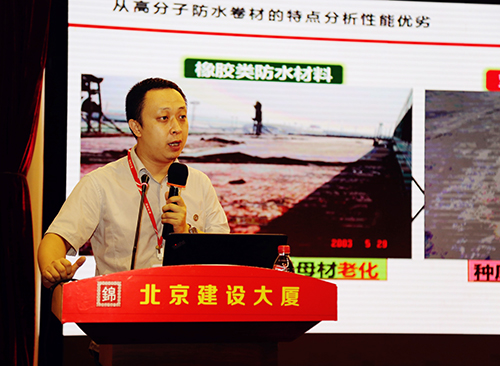 在宣讲历程中,,, ,,胡京波向在座专家及业内同仁剖析了TPO防水卷材在现浇综合管廊的应用优势。。。。。。他体现TPO的橡胶特征使其具有超长的耐久性,,, ,,同时还具备耐酸碱盐等化学侵蚀性,,, ,,可以使用在特殊情形中。。。。。。短暂时间里的详尽解说获得了现场在座业内人士的热烈掌声。。。。。。