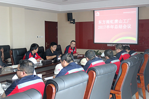 7月10日,,,,,唐山东方优德88官网网站召开上半年岁情总结聚会。。。。。。。厂长马到原主持聚会并讲话,,,,,副厂长龙志红、赵来望及各部分认真人加入聚会。。。。。。。