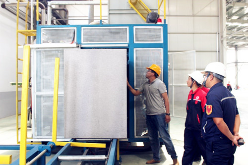 短短66天的时间,,,,,,,从装备进场、装置,,,,,,,到第一块保温板传出生产线,,,,,,,唐山生产基地的员工日复一日的忙碌着,,,,,,,从4月16日,,,,,,,预发泡装备进场装置;;;;;;;到6月3日,,,,,,,成型装备进场装置;;;;;;;再到6月20日,,,,,,,提前10天完成试车,,,,,,,离不开全员的辛勤支付。。。。。。
