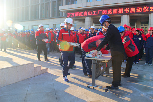 启动仪式在晨光中举行,,,,,,,,唐山生产基地各部分员工起劲踊跃加入,,,,,,,,将私人藏书带到现场,,,,,,,,为阅览室的建设孝顺力量。。。。。。捐书员工体现,,,,,,,,念书是一直学习、前进和相识天下的途径,,,,,,,,念书获取快乐是用其他方法无法替换的,,,,,,,,很兴奋能与同事分享这份喜悦。。。。。。此次募书运动共收获图书162本,,,,,,,,将所有摆设在阅览室供员工阅读,,,,,,,,以后还将源源一直富厚图书种类,,,,,,,,知足员工阅读需求。。。。。。
