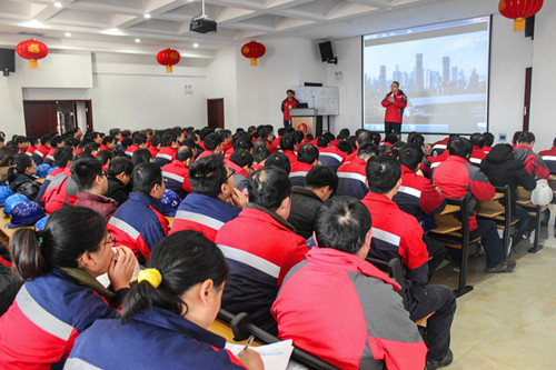 早上七点,,,,,唐山生产基地厂长马到原在办公楼前迎接所有员工,,,,,给各人贺年并发铺开年红包。。。。。八点,,,,,全体员工荟萃,,,,,举行夏历新年第一次升旗仪式,,,,,由马到原和各部分主管级以上职员签署2017年度清静责任状,,,,,组织全体员工举行清静宣誓,,,,,随后,,,,,全体职员举行了2个小时的清静培训。。。。。