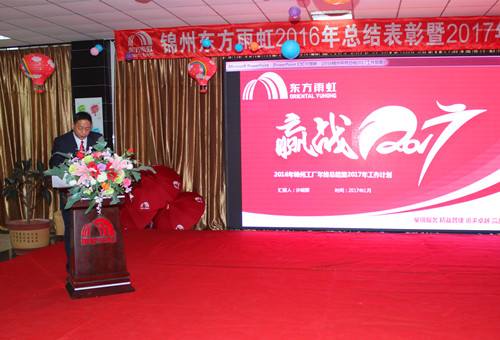 1月19日上午,,,,,东方优德88官网网站锦州生产基地举行2016年度总结表扬暨2017年度事情安排大会,,,,,外地政府向导、全体员工及部分眷属齐聚一堂,,,,,分享事情履历,,,,,表扬先进,,,,,齐头并进,,,,,赢战2017。。。。。。