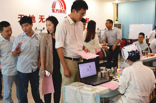 本次运动中,,,,, 45名报名献血的东方优德88官网网站员工带着温暖的笑容起劲配合广州市中心血站的事情职员安排,,,,,认真填写献血挂号,,,,,在事情职员的指导下口服葡萄糖水预防低血糖反应,,,,,以确保献血清静。。。。。。整个献血历程轻松有序,,,,,气氛活跃,,,,,在优德88官网网站人的无私贡献下,,,,,总采血量达12600cc。。。。。。