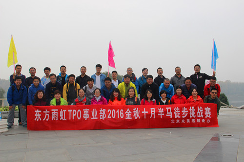 10月15日,,,,,,金秋十月,,,,,,硕果累累,,,,,,东方优德88官网网站TPO事业部举行了2016年十月半马徒步挑战赛,,,,,,来自销售、手艺、职能的33名同事加入了此次运动。。。。。。。