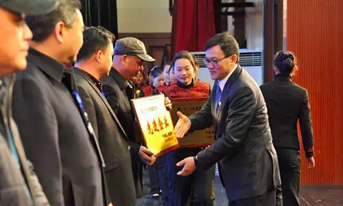 ?平舆县委、县政府表扬2015年度修建防水先进企业和优异企业家,,,,,,,李卫国为获奖企业家颁奖